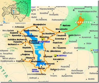 Αν από την Καρδίτσα θέλουμε να πλησιάσουμε τη βορειοδυτική πλευρά της λίμνης (προς Κερασιά - Κρυονέρι - Καλύβια - Νεράιδα - Πεζούλα - Φυλακτή - Νεοχώρι - Μπελοκομίτη – Φράγμα), η κατεύθυνση του δρομολογίου είναι από Μητρόπολη ολο ευθεια πάνω στο νέο δρόμο.